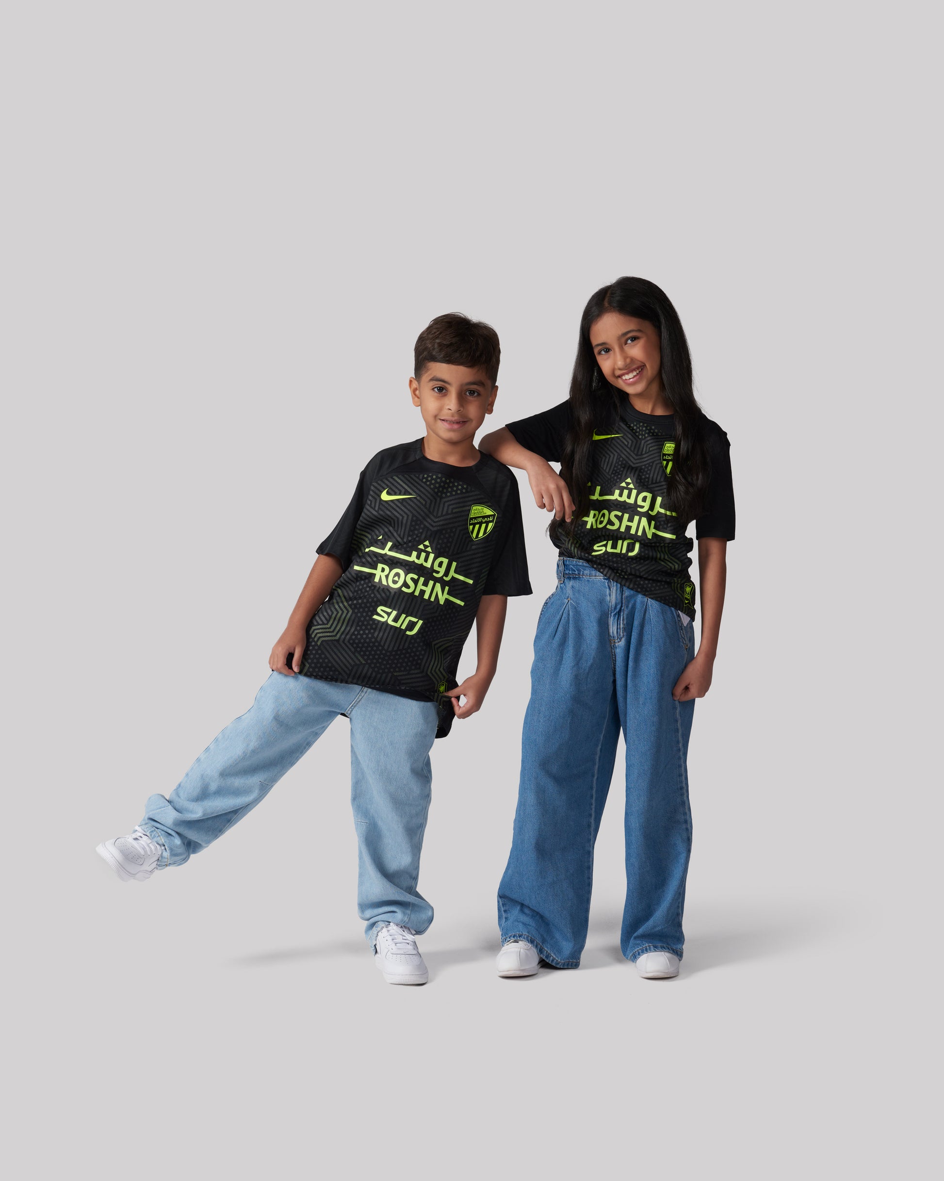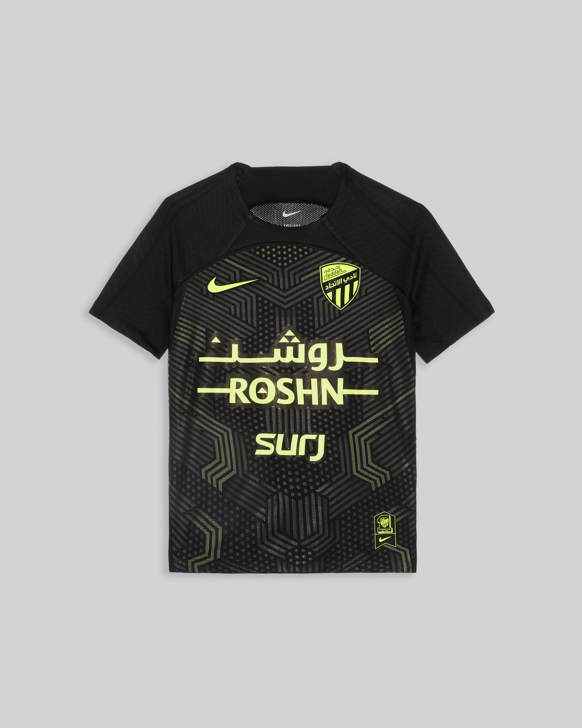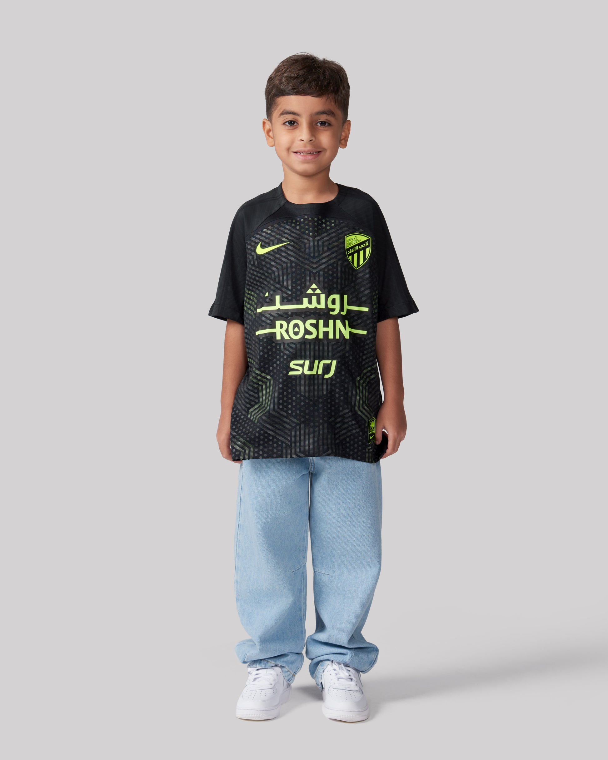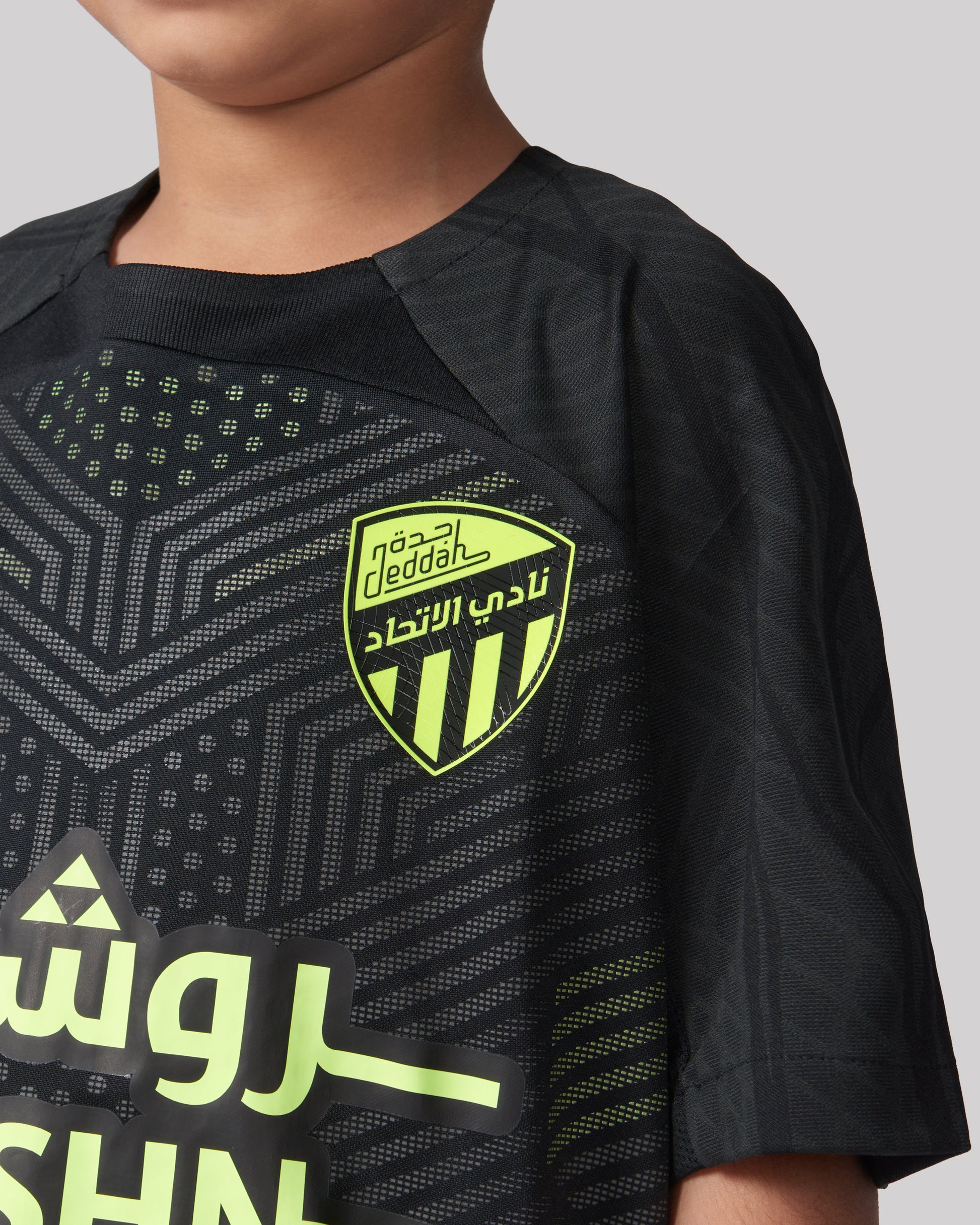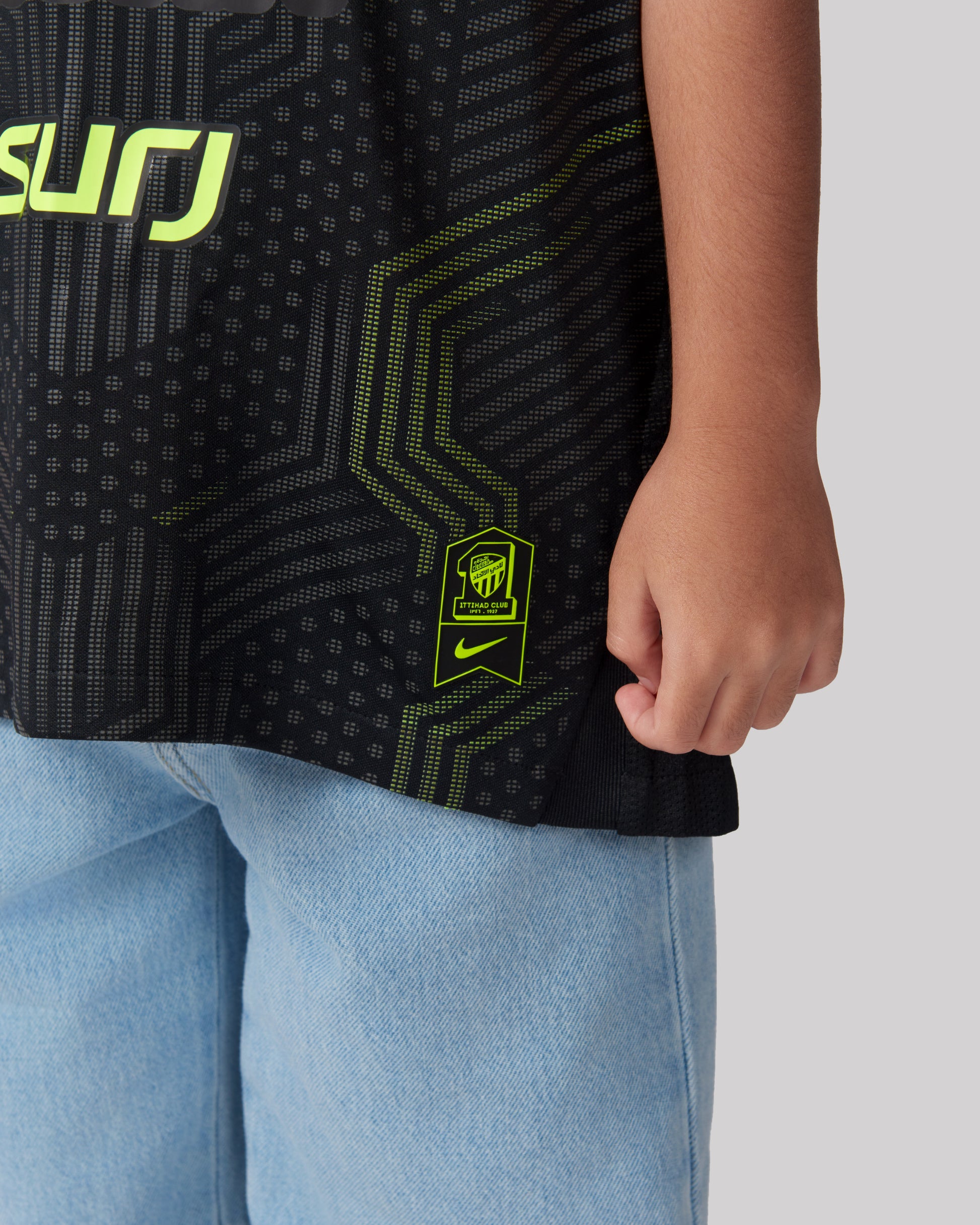 Designed with innovation and legacy in mind, the Nike Al-Ittihad 2024-25 third jersey features a sleek black base paired with vibrant Volt yellow detailing , symbolizing the club's cutting-edge approach and its connection to the country's esports scene .