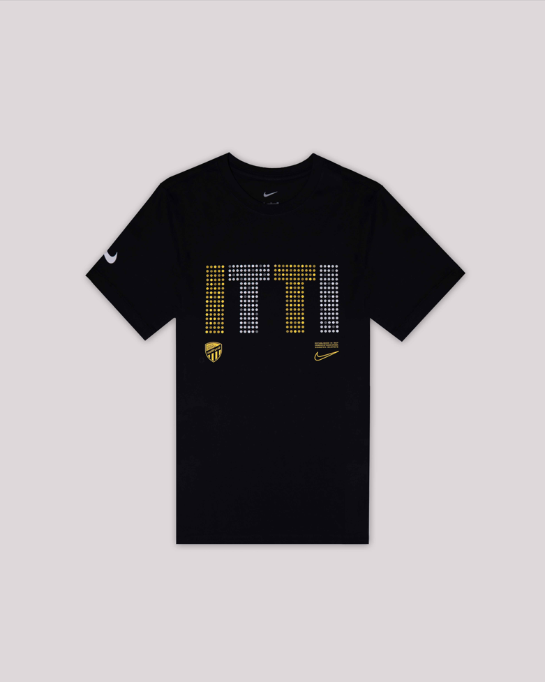 تيشيرت قطني أسود بتصميم مستوحى من أجواء المدرجات وأهازيج الاتحاد، يعكس شغف الجماهير.